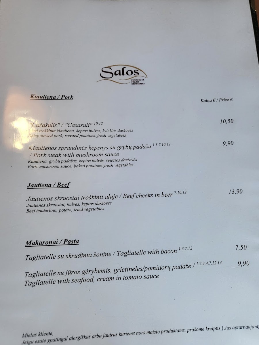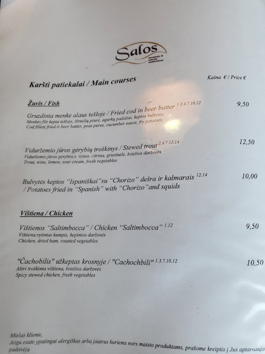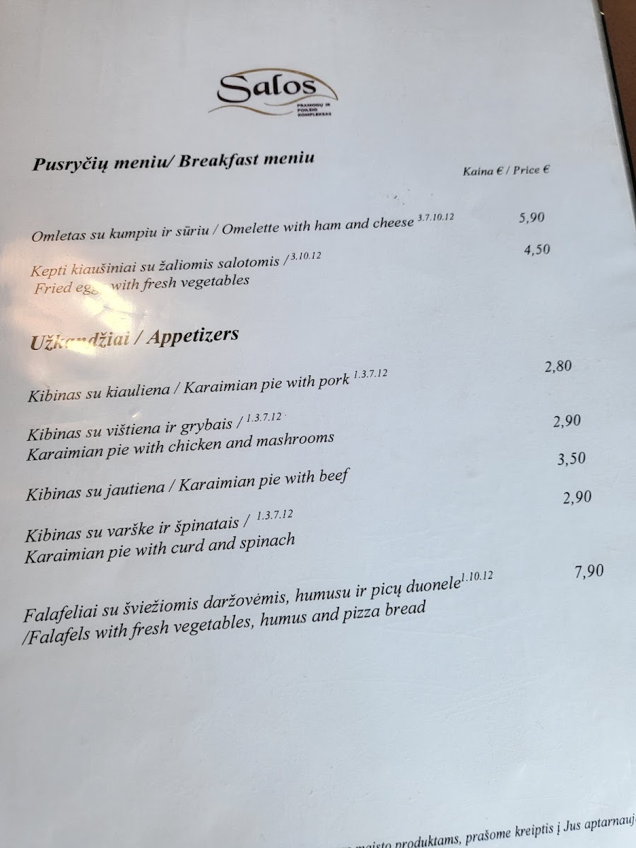 Welcome to Salos, a delightful dining destination located at Traku g. 6, Trakai, Lithuania, just a stone's throw from the picturesque Trakai Castle. This charming restaurant offers a menu that caters to families and food enthusiasts alike, making it an ideal spot for anyone visiting the area.